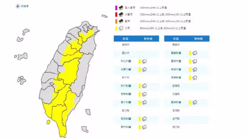 另外,大雷雨及山區暴雨災防警告也同步發布,民眾須於下午3時30分至4時36分持續警戒。
