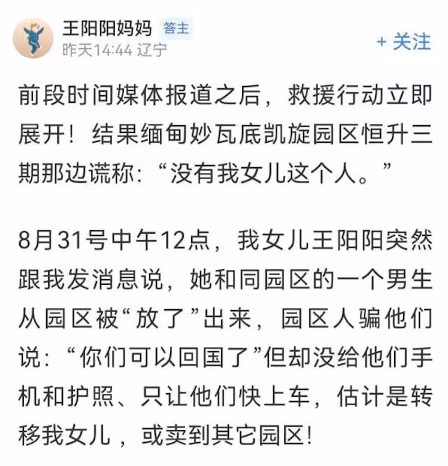 22歲女被騙緬甸300天未救出 曾給母發憔悴自拍照 疑被轉移柬埔寨