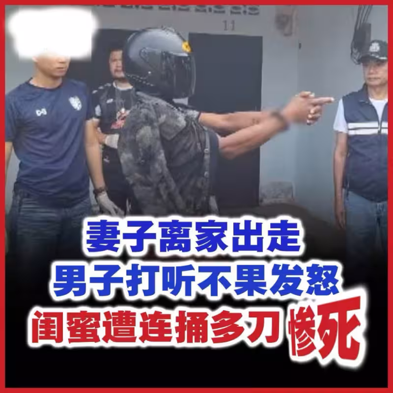 (曼谷綜合電)一名在泰國龍仔厝府工作的緬甸男子,打聽到離家出走的妻子到華富里府投靠閨密,他找到閨密後對方卻不願告知妻子下落,男子一怒之下向閨密連捅多刀,將她當場刺死後逃離現場。