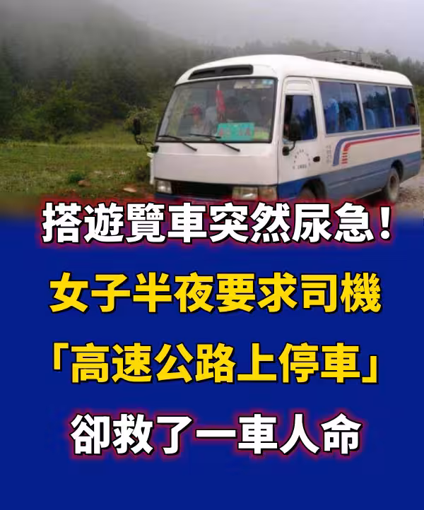 搭遊覽車突然尿急!女子半夜要求司機「高速公路上停車」 卻救了一車人命