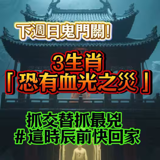 🌑 農曆七月將近尾聲,俗稱「鬼月」的能量也慢慢收攏,但就在鬼門關閉前,陰氣最盛、抓交替最凶!尤其今年適逢流年犯沖,部分生肖要格外小心,稍有不慎恐有血光之災。