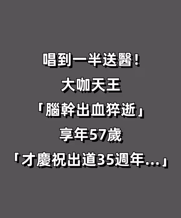 唱到一半送醫!大咖天王「腦幹出血猝逝」享年57歲 「才慶祝出道35周年」