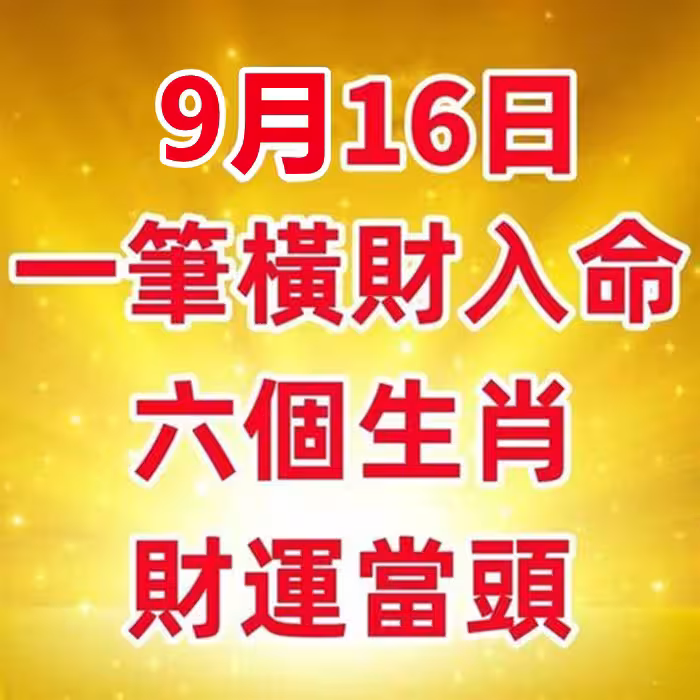 明天 「9月19號」 三生肖 橫財最旺 發久久~