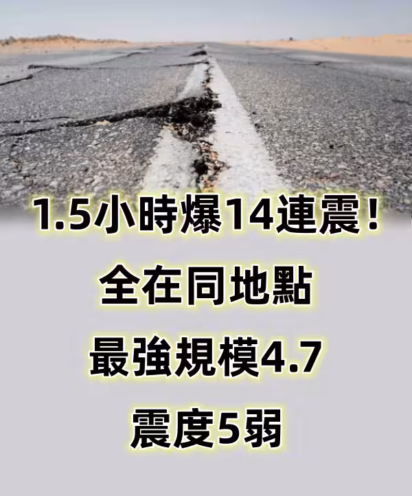 快訊/1.5小時爆14連震!全在同地點 最強規模4.7、震度5弱...