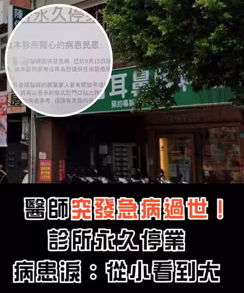 新北/醫師突發急病過世!診所永久停業,病患淚:從小看到大!