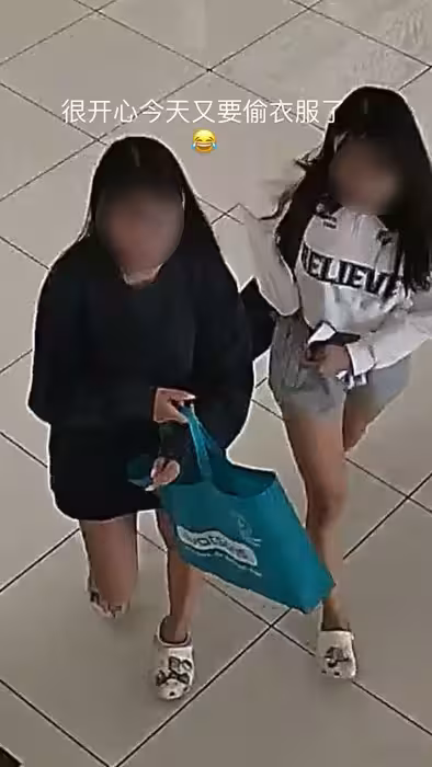 疑為新加坡籍的兩名年輕女子,各帶著袋子,涉嫌在本地3家服裝店連環偷竊。