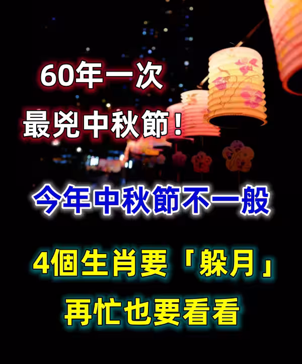 60年一次最凶中秋節!今年中秋節不一般,4個生肖要「躲月」,再忙也要看看!!