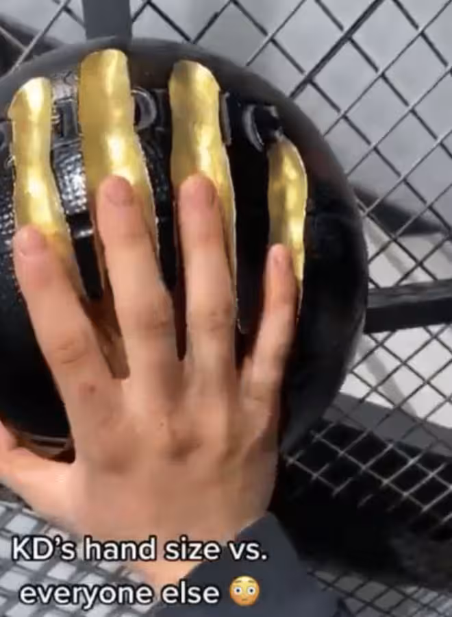 對籃球運動員來說,手掌大小直接影響控球穩定性、投籃手感和防守斷球能力。普通人的手掌長度大多在 18-20 厘米,而杜蘭特的手掌長度超過 24 厘米,寬度更是接近 13 厘米 —— 這樣的尺寸,讓他能輕鬆完成普通人無法做到的 「單手抓球變向」「指尖撥球投籃」。你可以靠努力練出穩定的投籃,但永遠練不出 「天生的巨掌」;你可以靠自律保持體型,卻無法改變手掌骨骼的天生大小。這就是天賦的 「不可逆性」,也是普通人與 NBA 球員的第一道鴻溝。