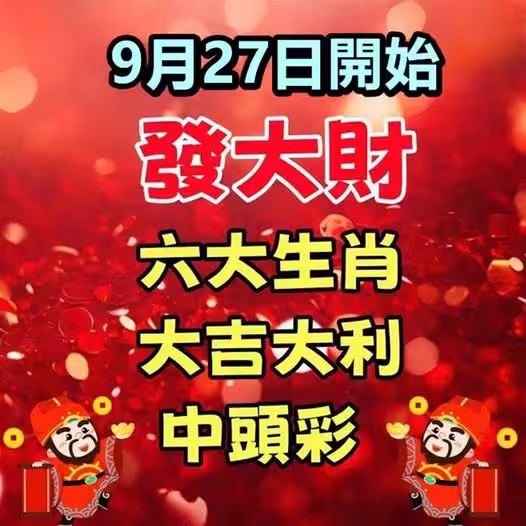 9月27日開始發大財,六大生肖大吉大利中頭彩!!