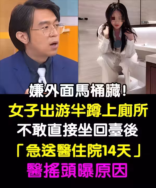 嫌外面馬桶髒!女子出遊「半蹲上廁所」不敢直接坐... 回台後「急送醫住院14天...」 醫搖頭曝原因!