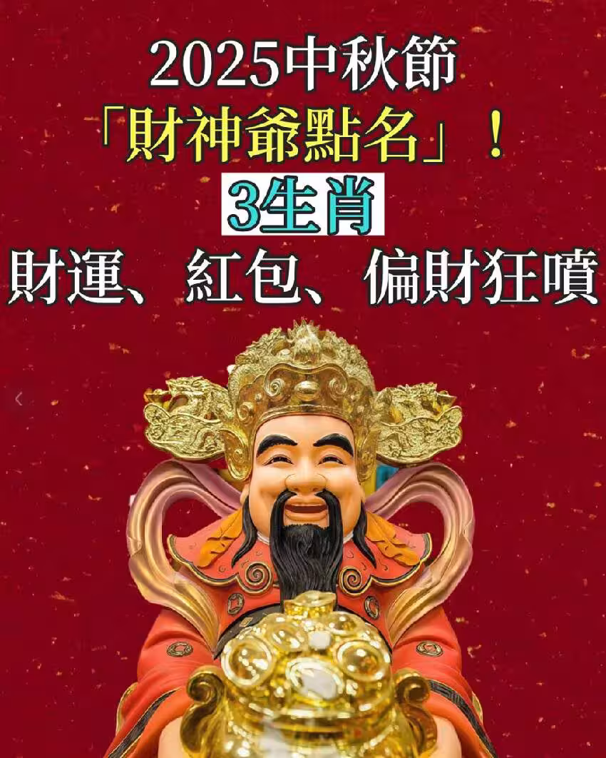 2025中秋節「財神爺點名」!3生肖財運、紅包、偏財狂噴