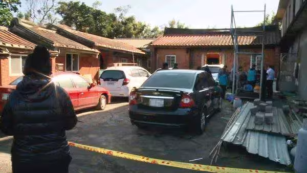 ▲翁仁賢先對停在三合院廣場(圖)的轎車潑汽油,之後再進屋縱火。