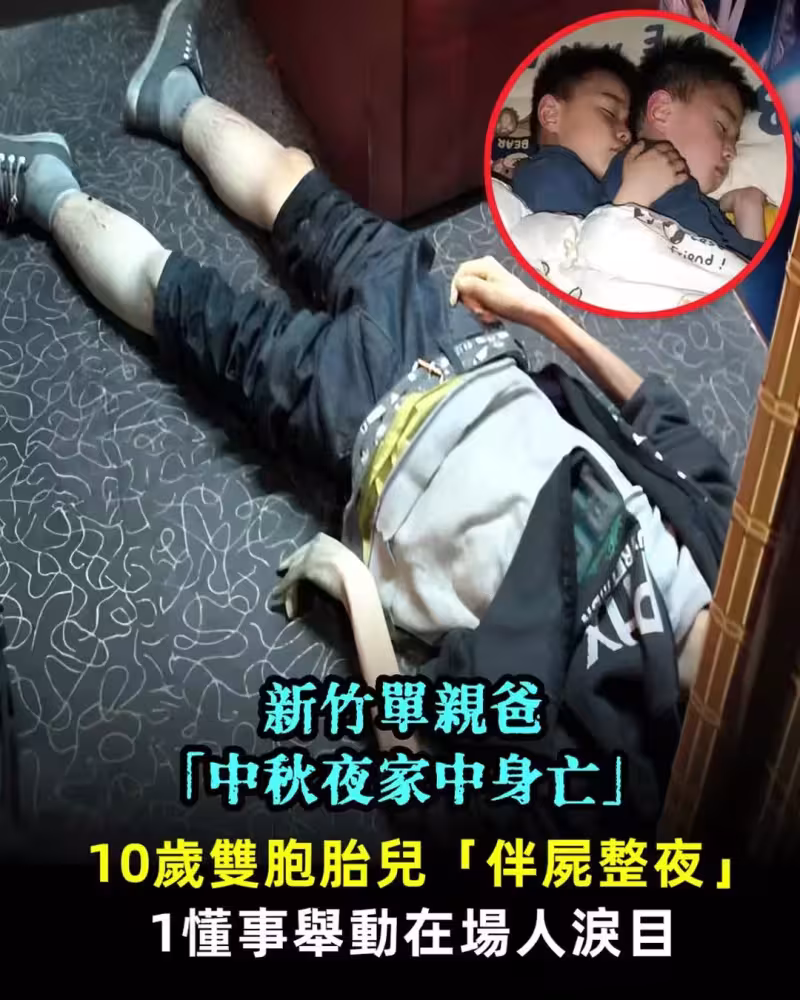 新竹單親爸「中秋夜家中身亡」10歲雙胞胎兒「伴屍整夜」以為爸爸睡著:1懂事舉動在場人淚目