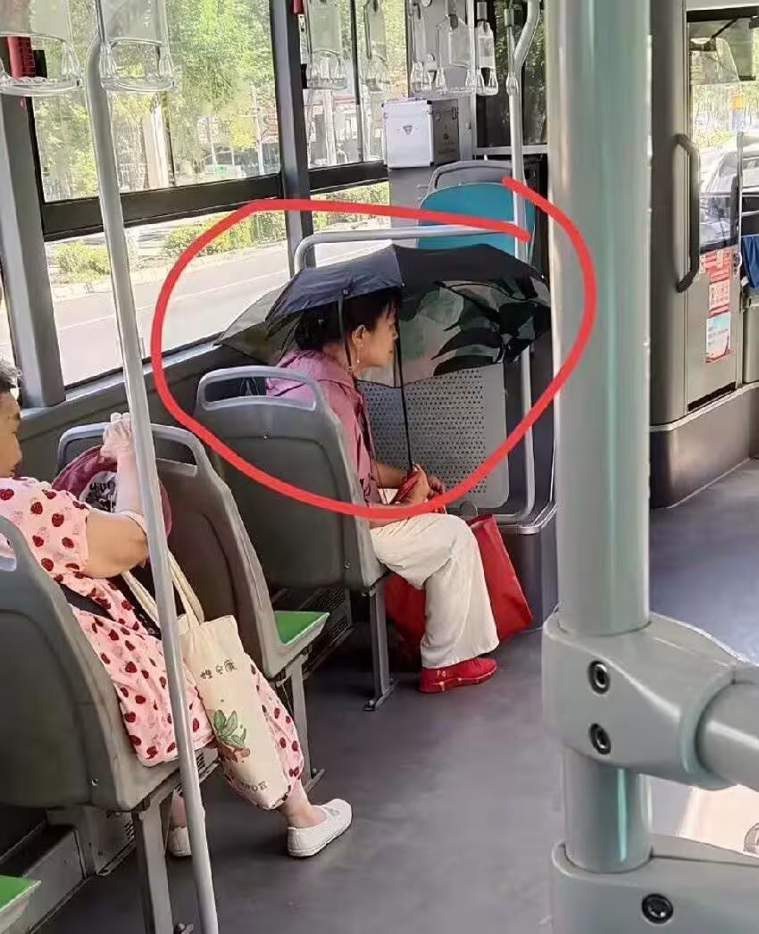 中午公車上驚現「遮陽傘」大姐! PO網吐槽後,網友放大照片第3秒集體道歉