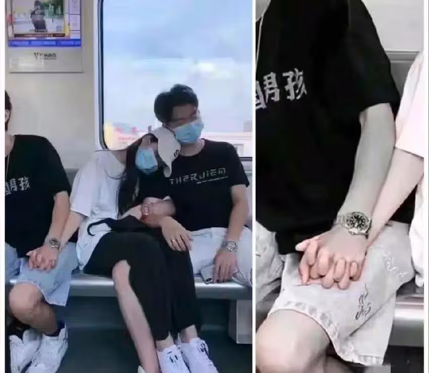 如此親密又微妙的姿勢讓網友直言:「坐過了五六站我都沒想明白她們是什麼關係!」