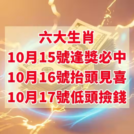 六大生肖:10月15號逢獎必中,16號抬頭見喜,17號低頭撿錢