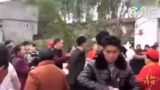 新娘被狼狽地拖下車後,靠伴娘的攙扶下才終於站穩,但新郎的怒氣可還沒消,走在新娘背後還踹了她一腳,又把捧花甩在新娘頭上,並對著眾人說「一毛錢彩禮也沒給,一件嫁妝也沒有,現在還要下車錢,你們家人究竟想幹什麼!」而新娘父母就在圍觀親友中卻也不敢出聲,新娘全程也沒有說話,婚禮也就在這尷尬的氣氛中完成了。