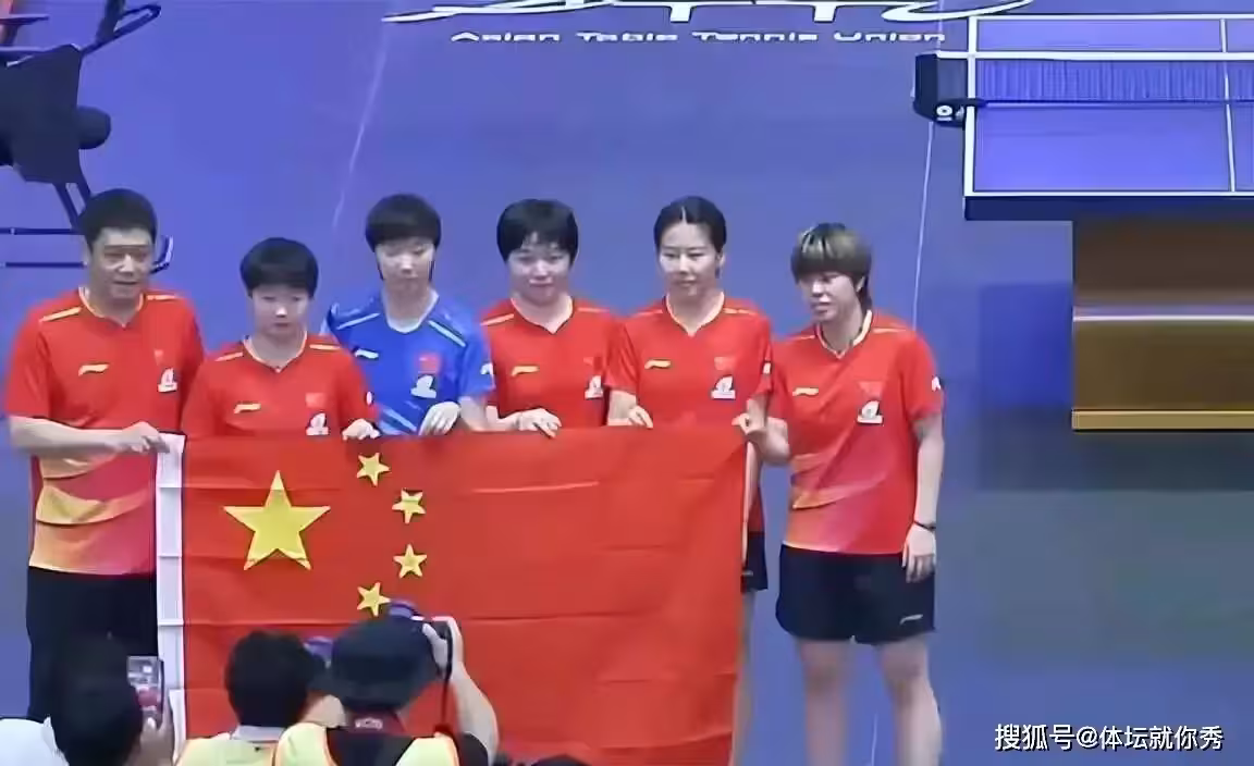 中國女乒3一0日本奪冠,三哥指揮拍出另類合影,王曼昱穿錯球衣
