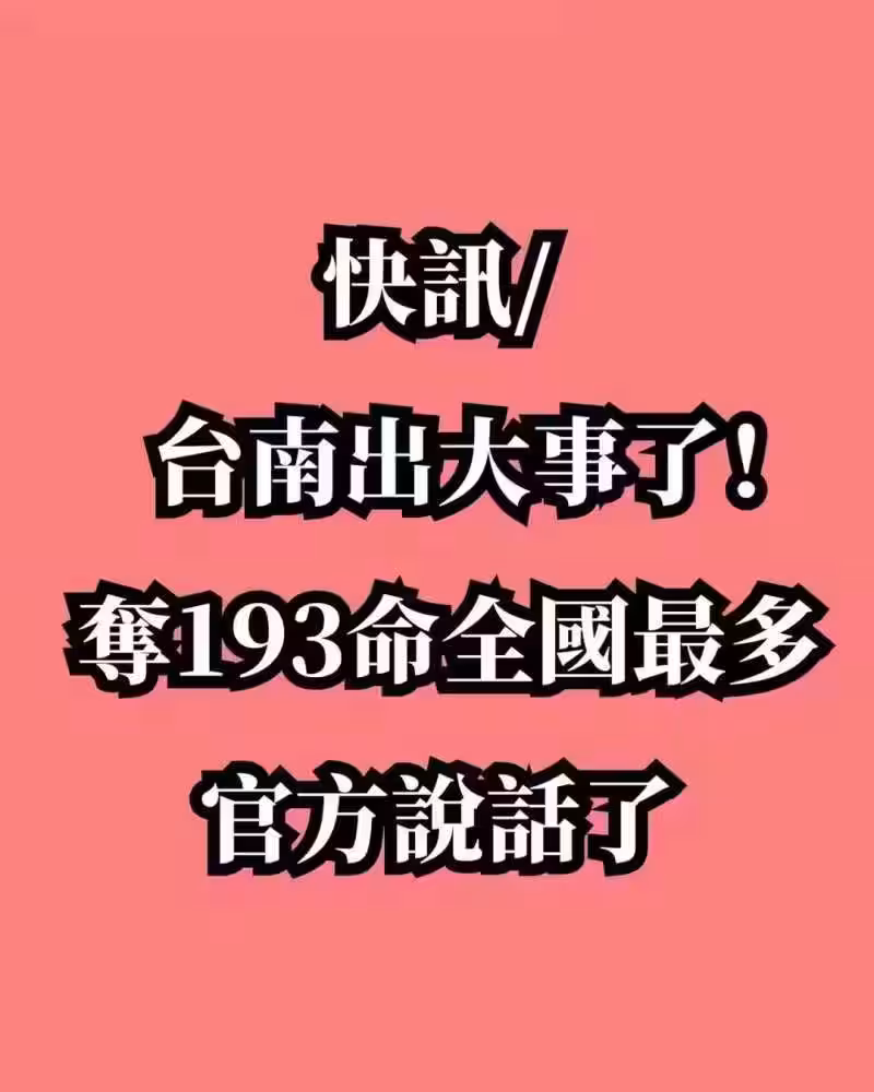快訊/台南出大事了! 奪193命全國最多,官方說話了!