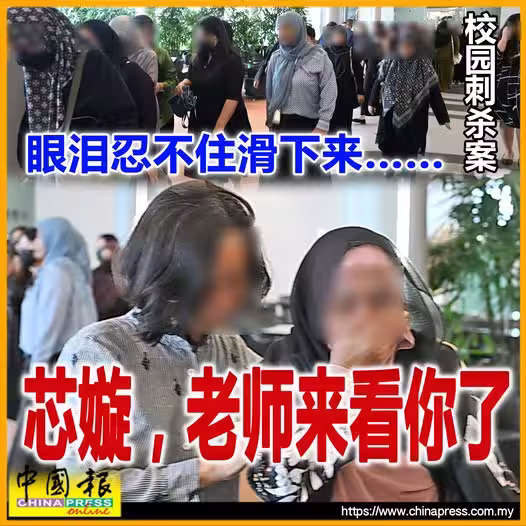 (吉隆坡17日訊)「男中學生刺死學姐案」;事發學校的老師集體出席,為女死者葉芯嫙弔唁。