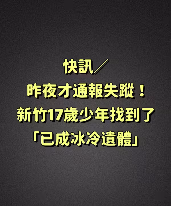 快訊/昨夜才通報失蹤!新竹17歲少年找到了「已成冰冷遺體!」