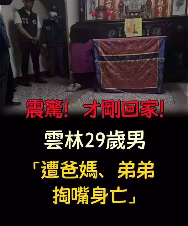 震驚!!剛回到家,雲林29歲男「遭爸媽、弟弟掏嘴身亡!」