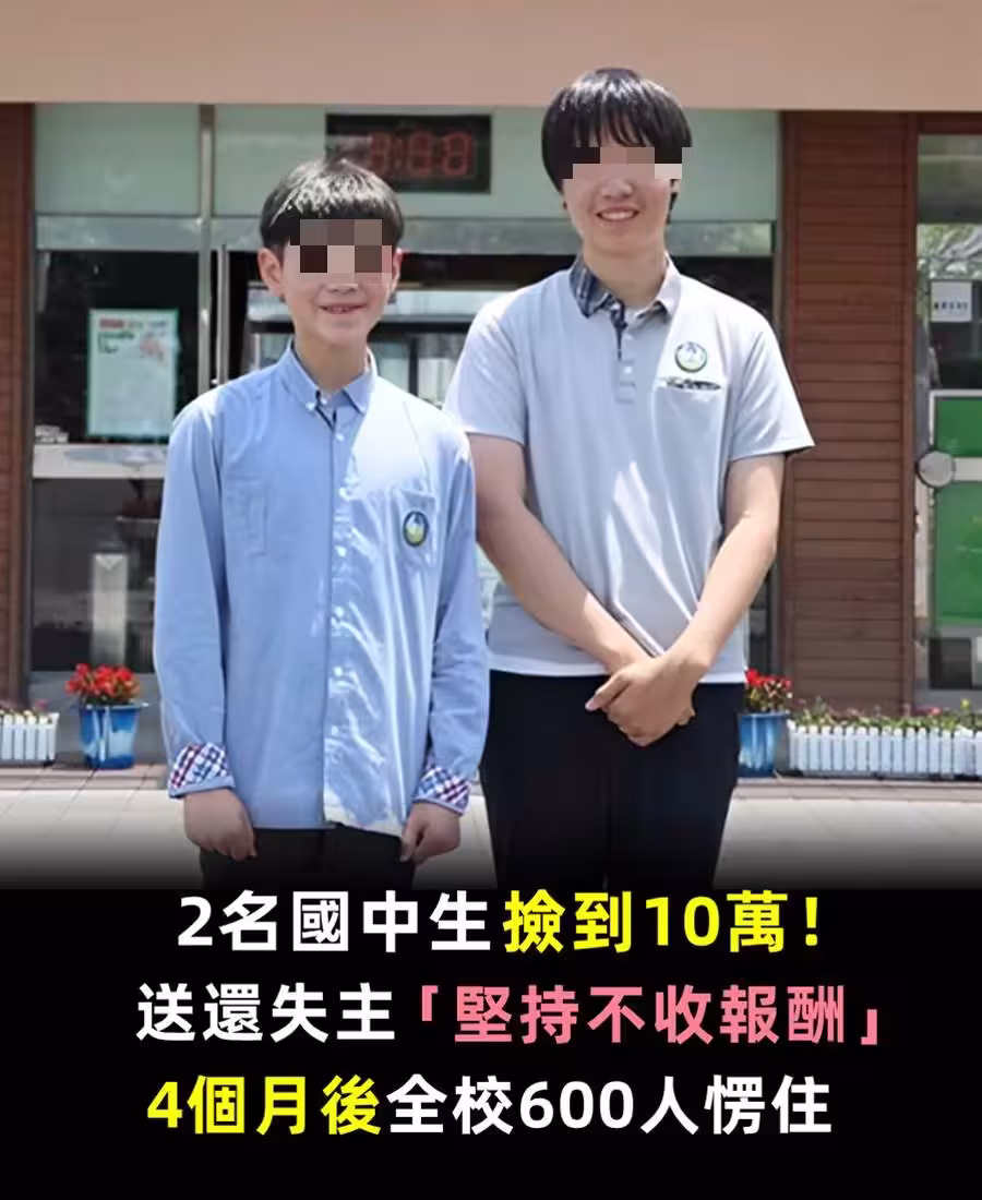 2名國中生撿到10萬!!送還失主「堅持不收報酬」4個月後全校600人愣住
