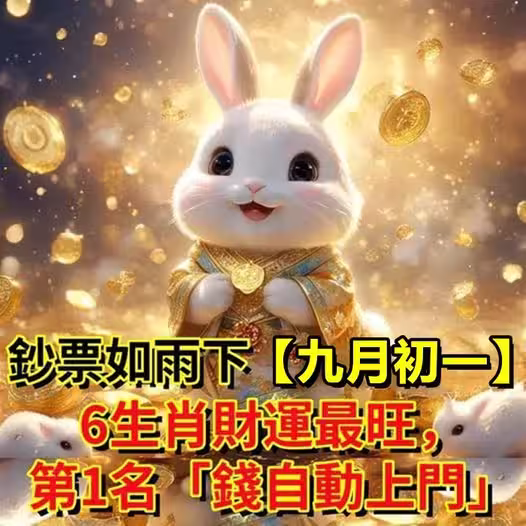 鈔票如雨下!【農暦九月初一】6生肖財運最旺,第1名「錢自動上門!」