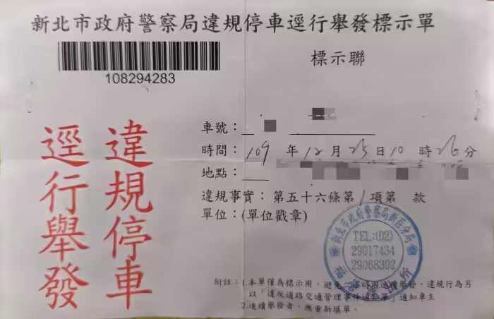 想不到這個合情合理的舉動,竟然被一旁的檢舉達人捕捉到,舉發王男「在人行道或騎樓臨時停車」,事後也讓他得到一張新台幣500元的罰單。