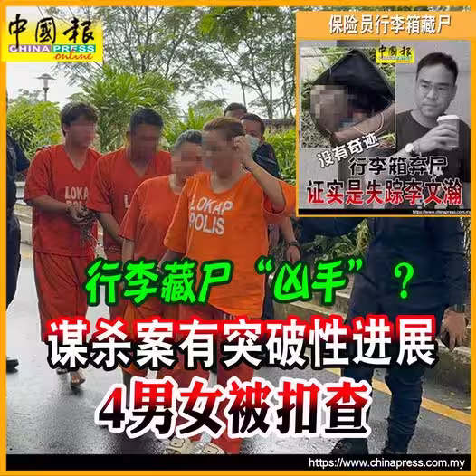 (北海22日訊)保險員行李箱藏屍案,出現突破性進展,警方共逮捕4名男女,並押上法庭延扣7天助查此謀殺案!