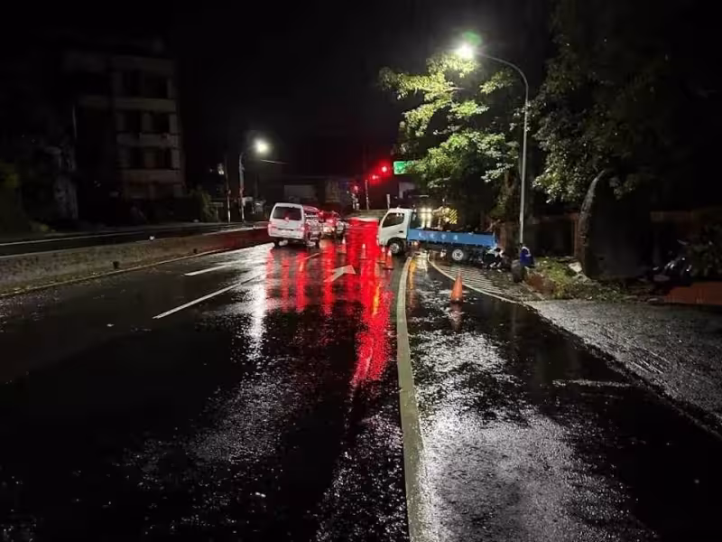 事故發生時,現場目擊者表示先是聽到打滑的聲音,接著看見小貨車失控沖向對向車道。一名機車騎士原本正常騎在路上,卻遭到波及當場被撞飛。小貨車直到撞上路邊才終於停下來。警方調查顯示,這輛小貨車由44歲戴姓駕駛駕駛,當時他正行經新北市淡水興仁路,準備往三芝方向行駛,卻在過彎時因路面濕滑而打滑,撞上分隔島。事故造成對向56歲楊姓女子遭到波及,現場留下小貨車橫停在路邊的畫面,車尾還有一輛摩托車及車殼碎片。
