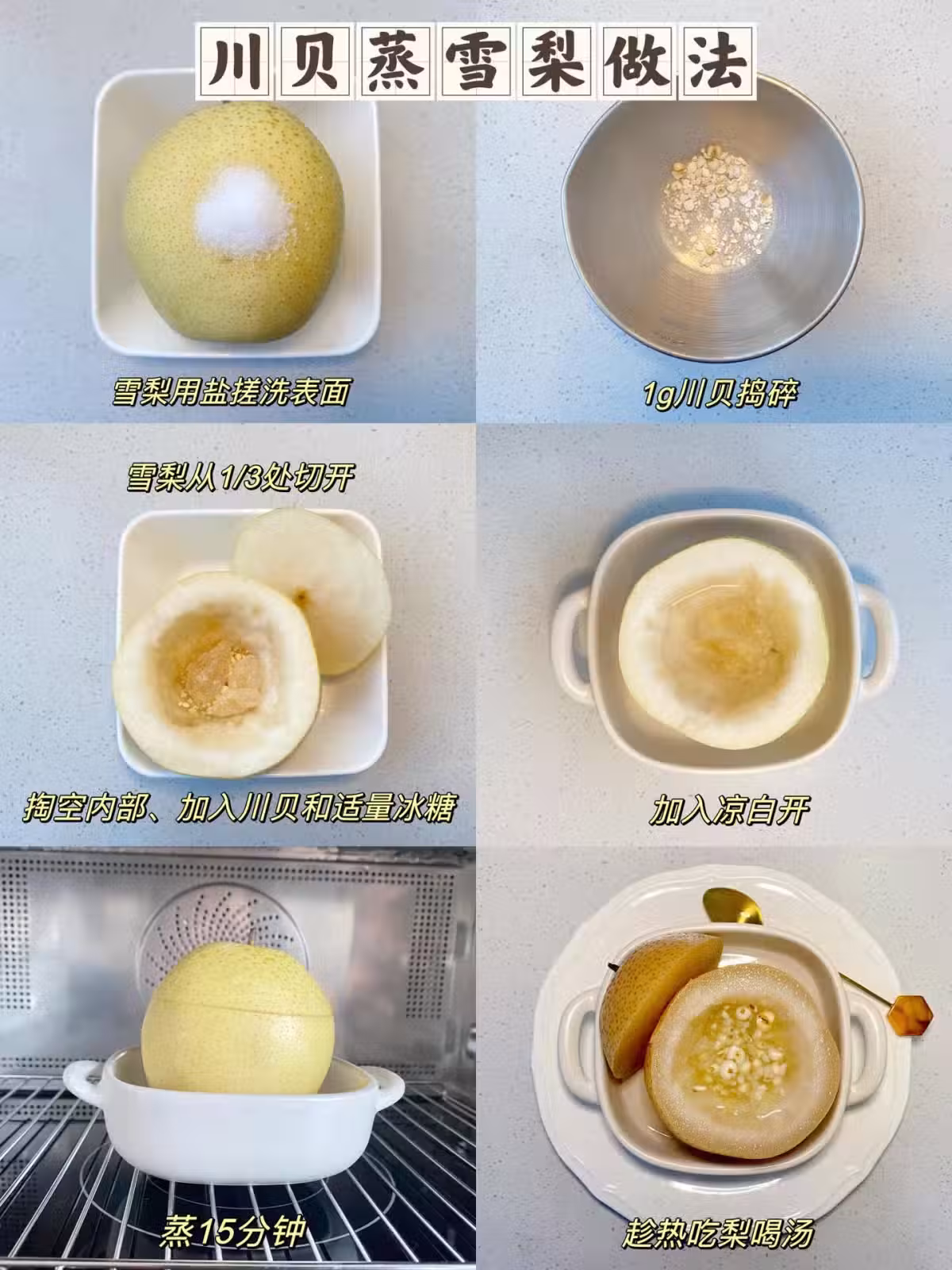 花椒蒸雪梨:花椒溫中散寒,花椒蒸梨能祛寒止咳潤肺。