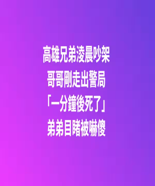 高雄兄弟凌晨吵架!哥哥剛走出警局「一分鐘後死了」弟弟目睹嚇傻