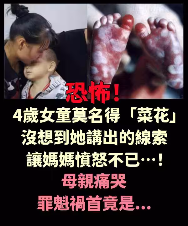 恐怖!4歲女童莫名得「菜花」,沒想到她講出的線索讓媽媽憤怒不已…!母親痛哭,罪魁禍首竟是……