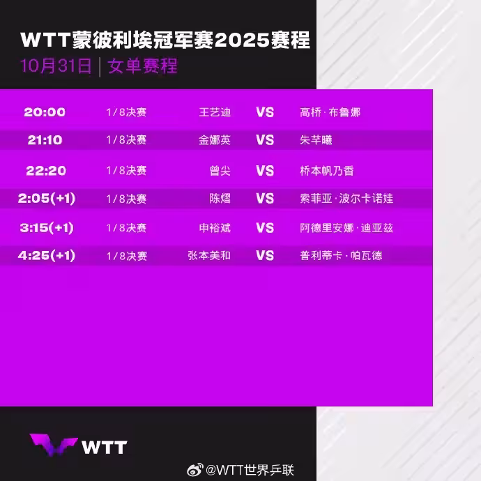 __凌晨2點,中國小將陳熠VS波爾卡諾娃,日本張本美和或慘遭淘汰