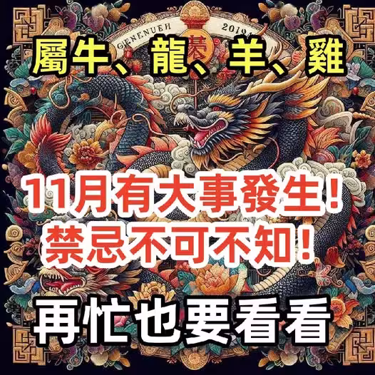【屬牛、龍、羊、雞】11月有大事發生!禁忌不可不知!再忙也要看看~
