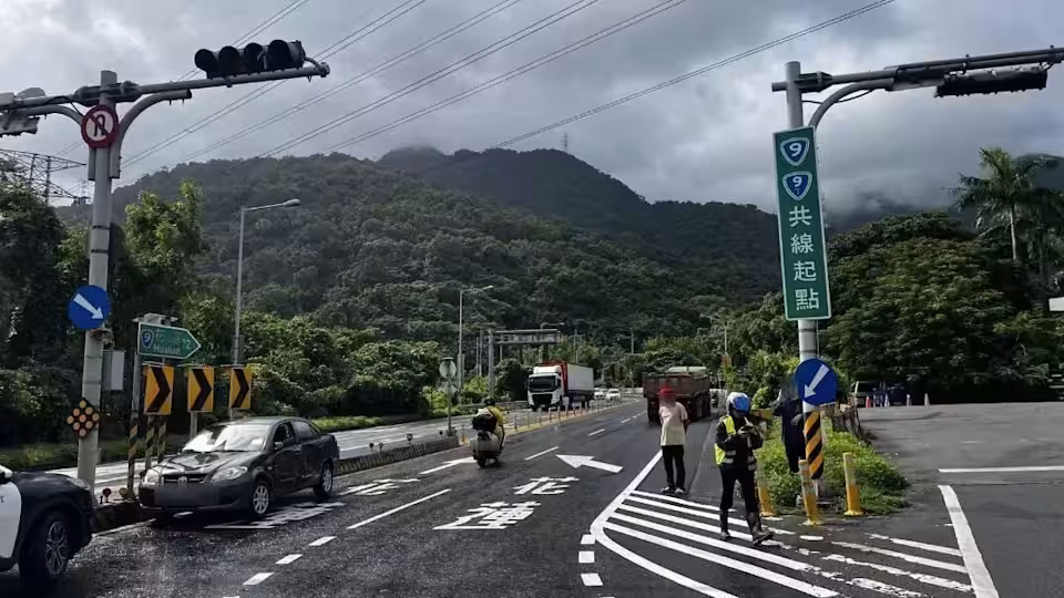 蘇澳台9線砂石車右轉不慎 轎車挨撞「慘被推著走」