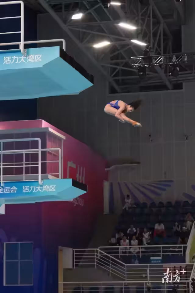廣東隊選手王偉瑩在女子團體10米跳台比賽中發揮穩定。