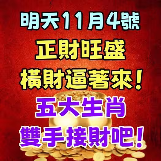 明天11月4號正財旺盛,橫財逼著來!五大生肖雙手接財吧!