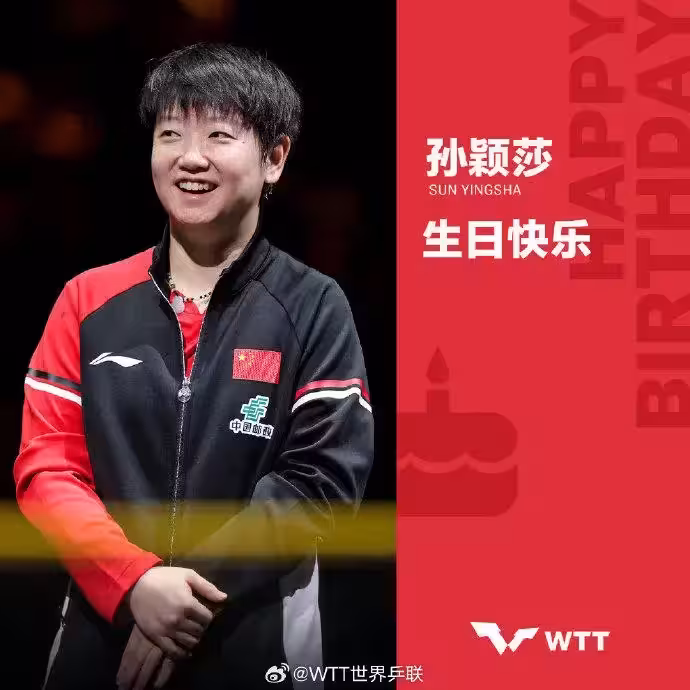 @WTT世界乒聯 也為孫穎莎送上祝福:「『莎』場逐光,不負韶華;球拍為刃,不負熱愛,你用汗水寫下的每一頁,都閃閃發光。願你新的一歲球拍依舊鋒利,笑容永遠燦爛。」
