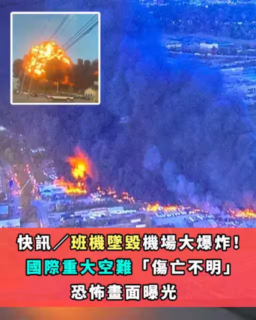 突發 / 班機墜毀機場大爆炸!!! 國際重大空難「傷亡不明」恐怖畫面曝光