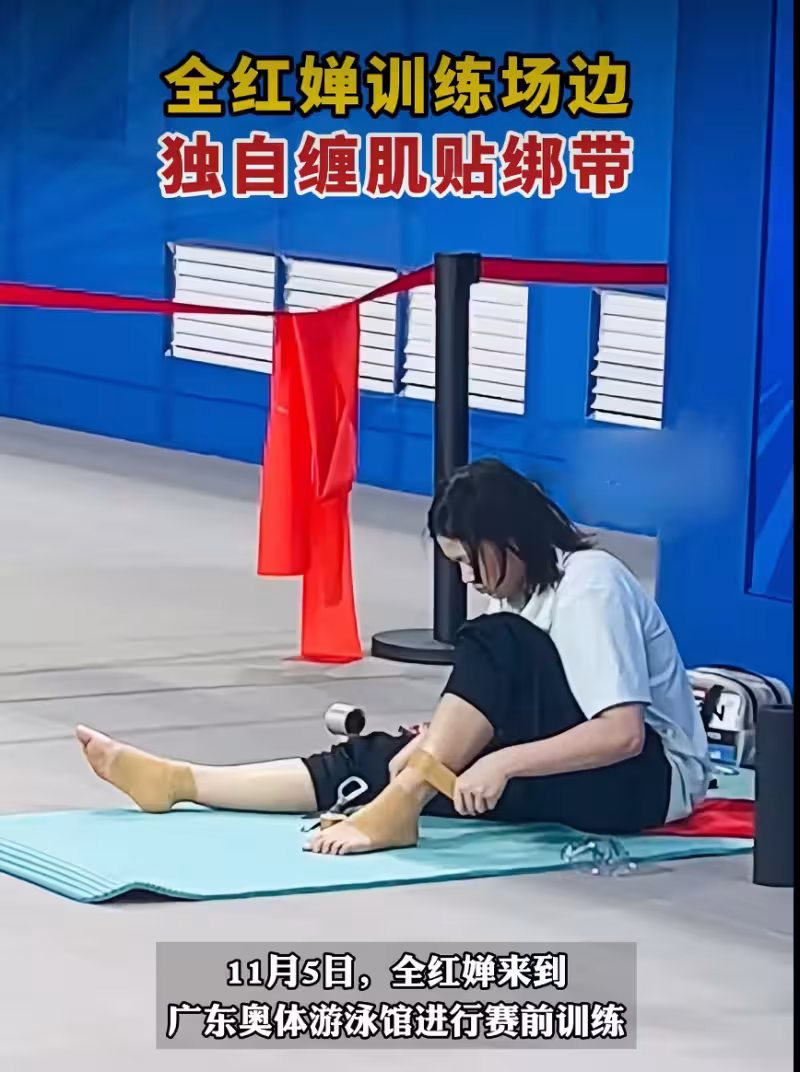廣東隊教練何威儀在此前的採訪中透露了全紅嬋的傷情。他表示,全紅嬋是帶傷參賽:「全紅嬋現在的脛骨、踝關節都是受傷的,在堅持比賽,大家看不出來,其實她的身上都是肌貼,她是很難很難的,每天都是疼得不得了。」