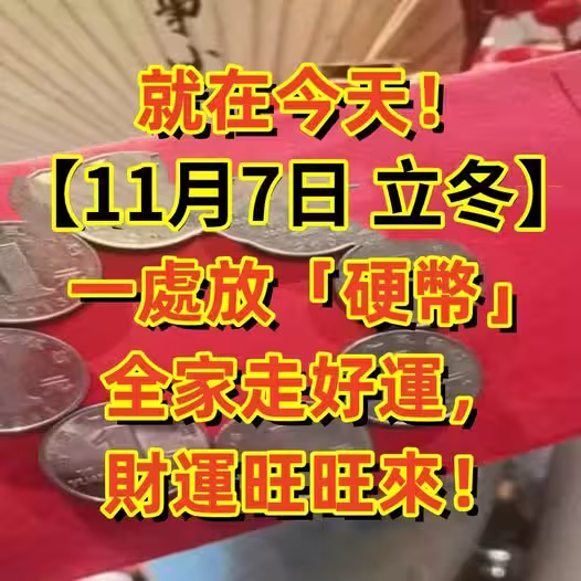 就在今天!「11/7日立冬」一處放「5枚1元硬幣」全家走好運,財運旺旺來!