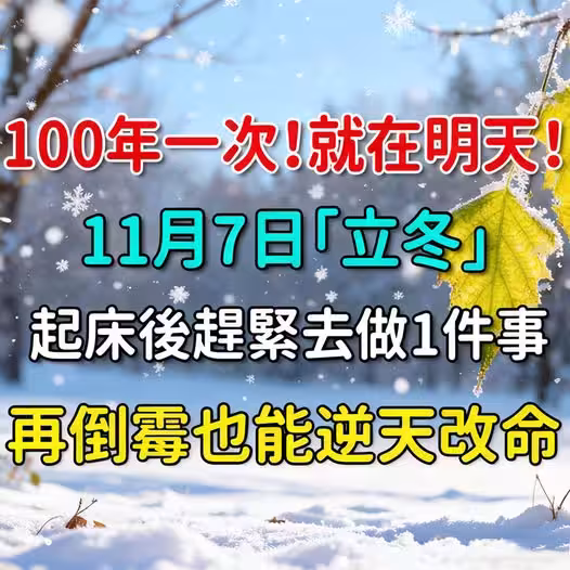 「110年一遇」的立冬將在明天11月7日登場!命理師提醒:只要起床後「立刻做1件事」,就能把積壓的晦氣一口氣翻盤,再倒楣的人也能「乞丐變富豪」。