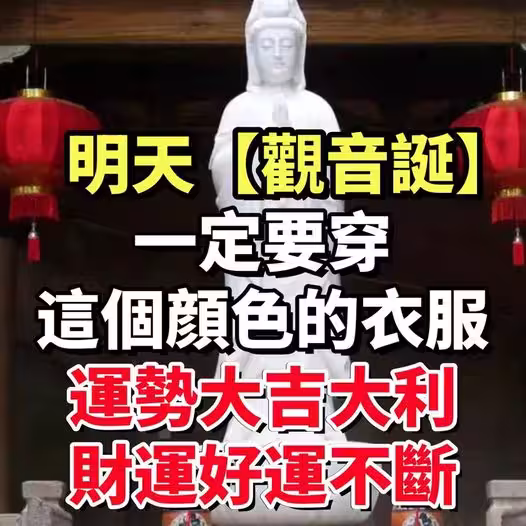 📌 觀世音菩薩象徵慈悲、智慧與福報,這天穿對顏色的衣服能夠吸收菩薩的能量,讓運勢提升、財運翻倍!