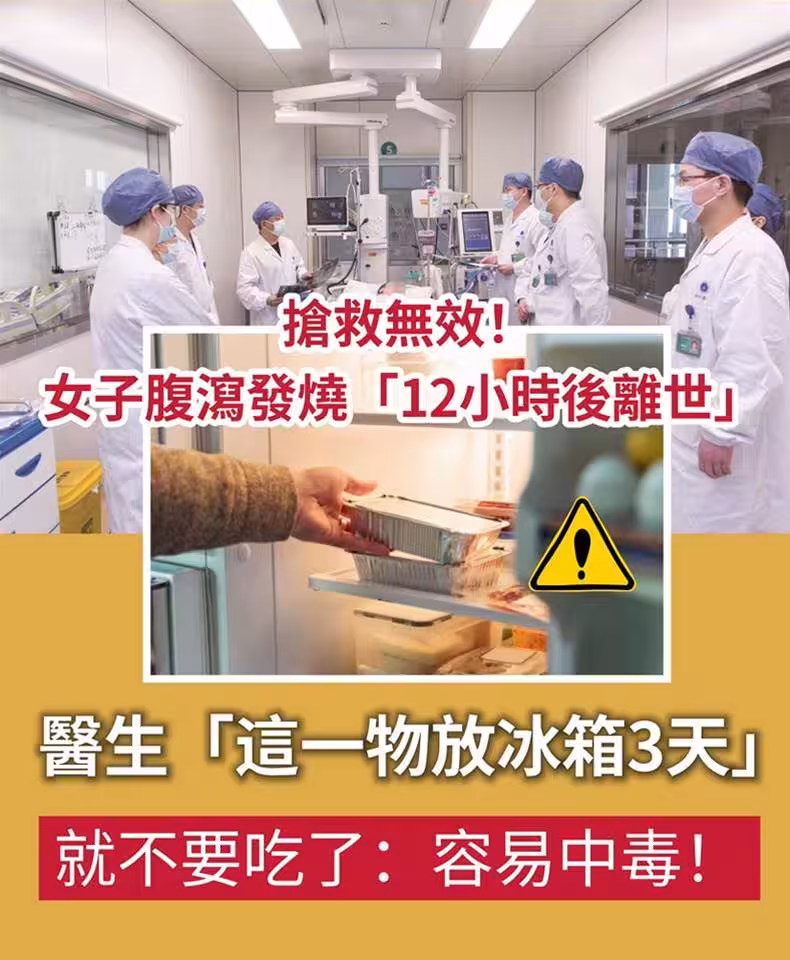 搶救無效!女子腹瀉發燒「 12小時後離世 」 醫生說了:「 這一物放冰箱3天 」就不要吃了:容易中毒!