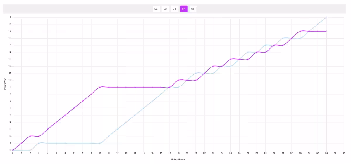 輸掉第四局後的卡爾伯格再也未能恢復鬥志,邱黨則抓住機會迅速拉開分差,最終以11-5終結整場比賽,由此而大比分4-1擊敗這位勁敵闖入男單4強爭奪冠軍。