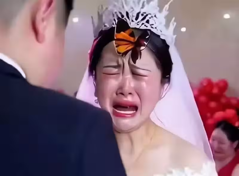 婚禮上,「一隻胡蝶死守新娘」 遲遲不走「新娘愣3秒」當場淚崩顫喊:今天他的真來了