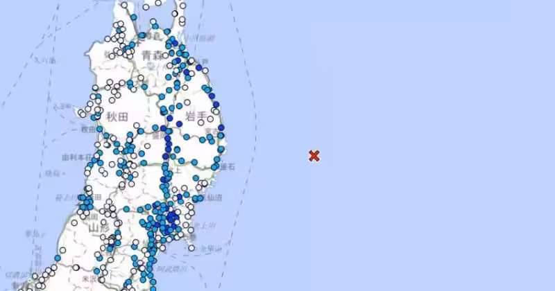 根據《CTWANT》報導,東北地區外海在9日下午5時3分發生芮氏規模6.7的強烈地震,震央位置在北緯39.4度、東經143.5度的三陸近海域,震源深度大約10公里。