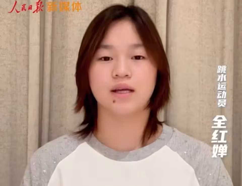 11月14日晚間,《人民日報》社媒發布一段全紅嬋的視頻。視頻中,全紅嬋單人出鏡,給十五運做宣傳:「大家好,我是跳水運動員全紅嬋,敢嘗試就值得掌聲。肯努力就會有收穫。」